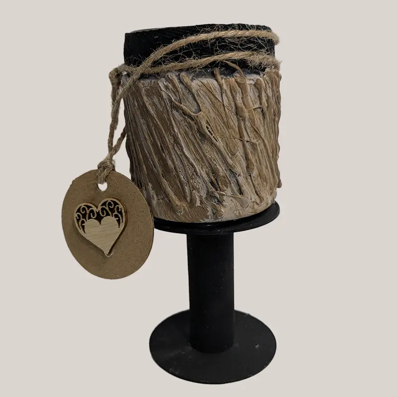 Candelabro en cristal con tubo de cartón recliclado.