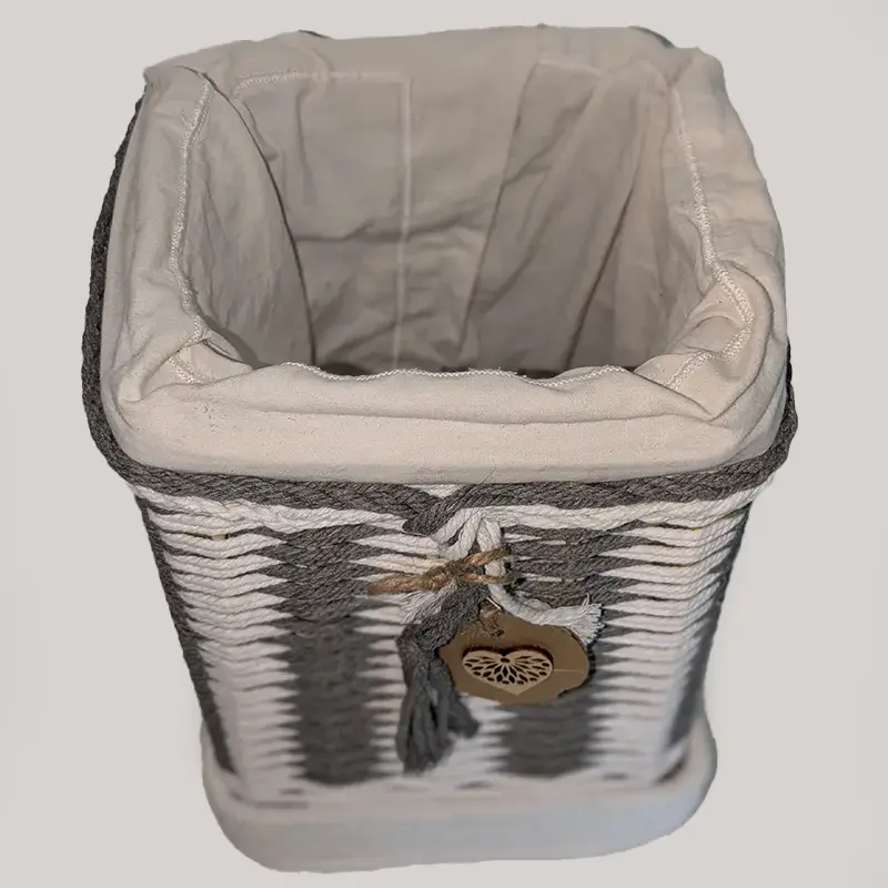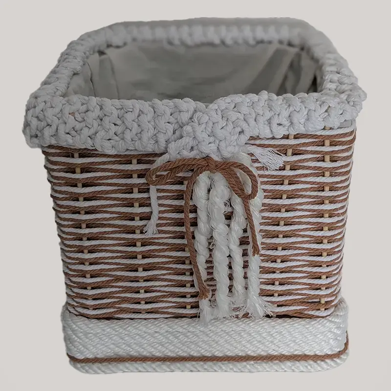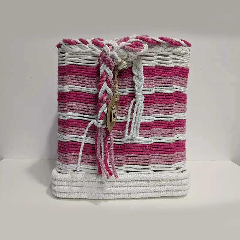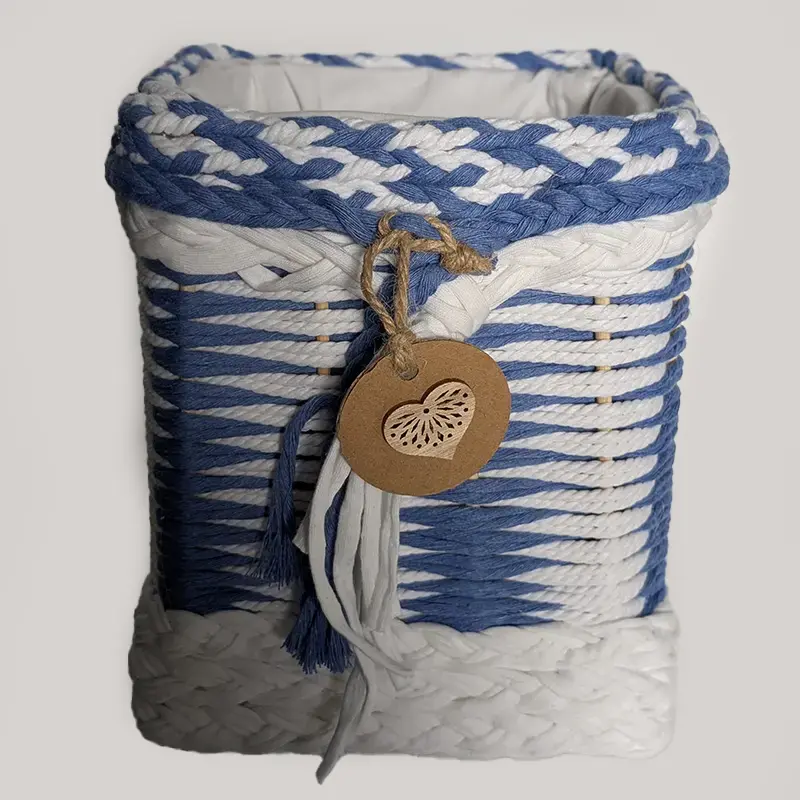 Cesta tejida a mano con cuerda de algodón.