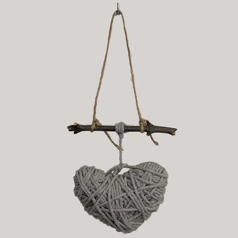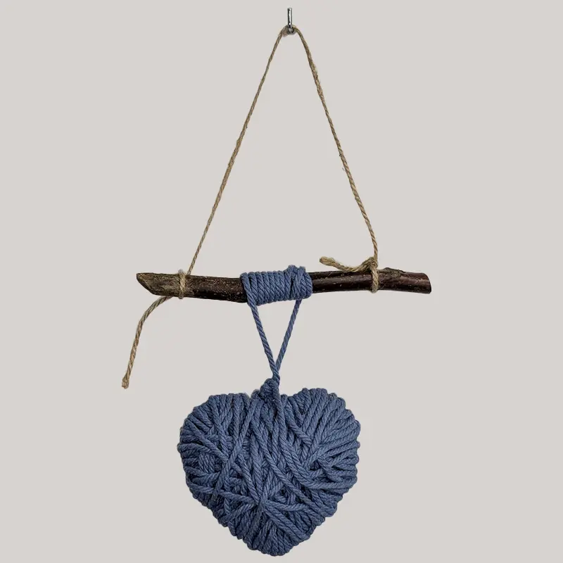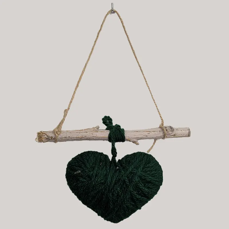 Colgante realizado con cuerda de algodón (corazón verde con lana).