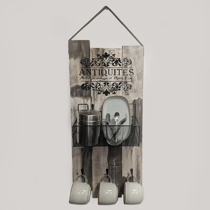 Organizador colgante «ANTIQUITES» con un cesta y tres ganchos.