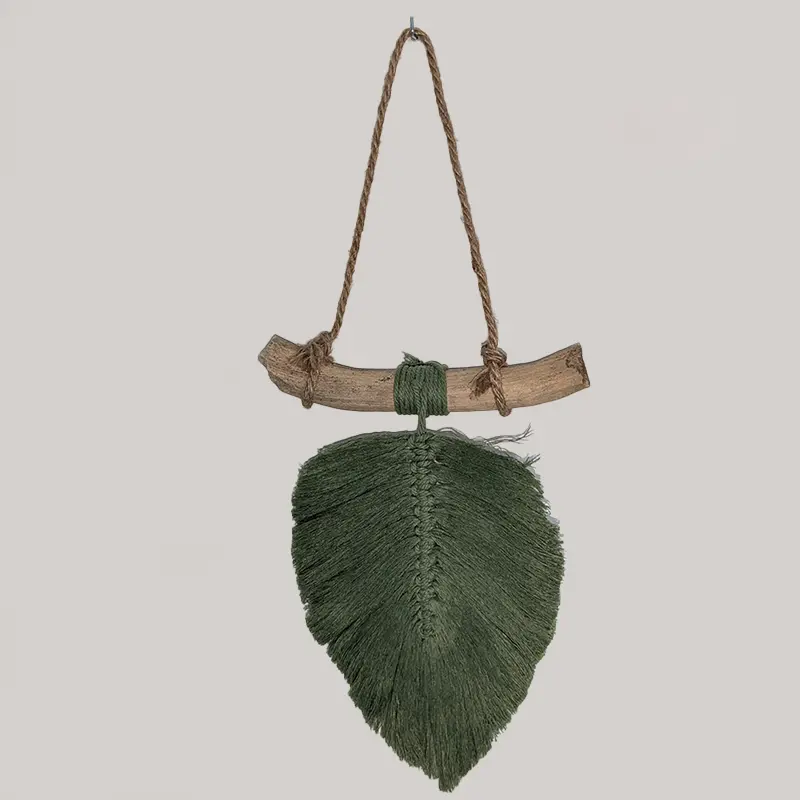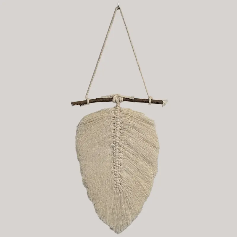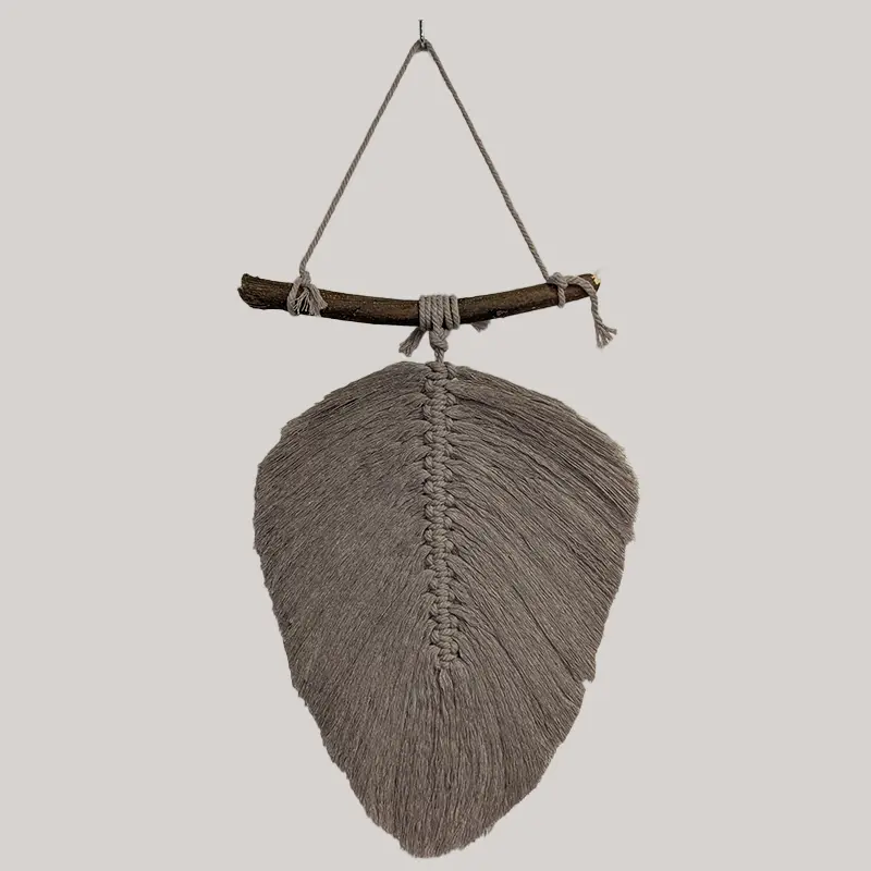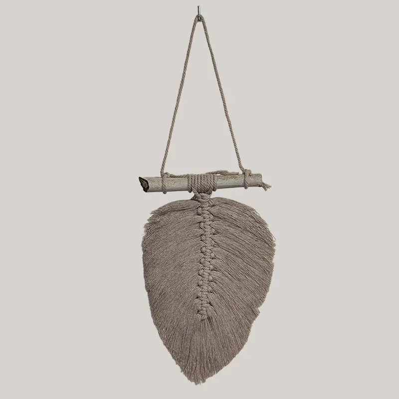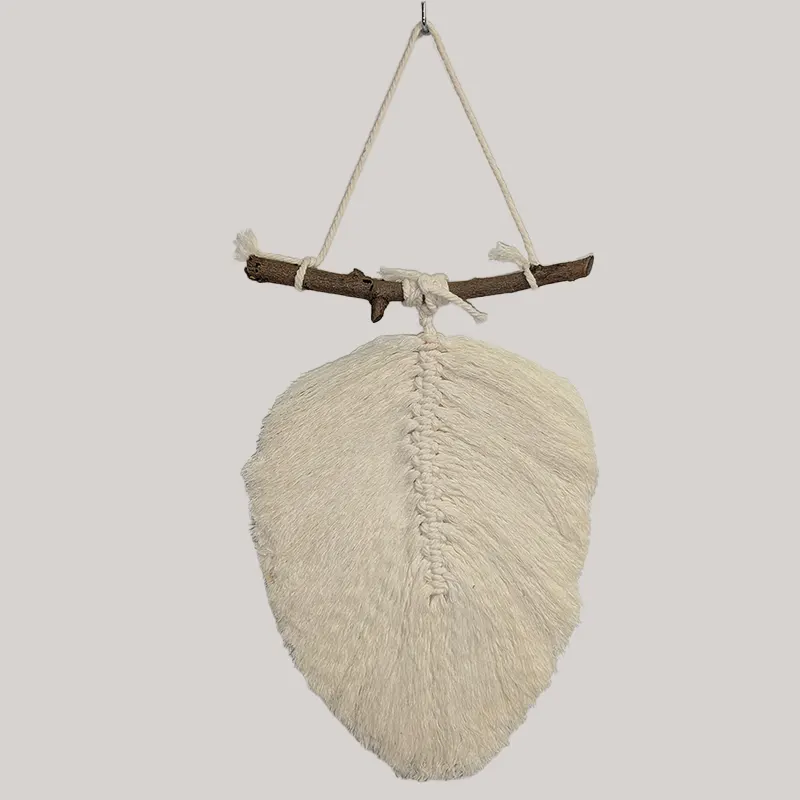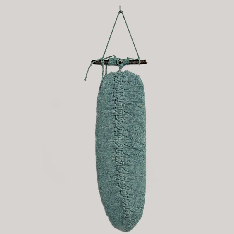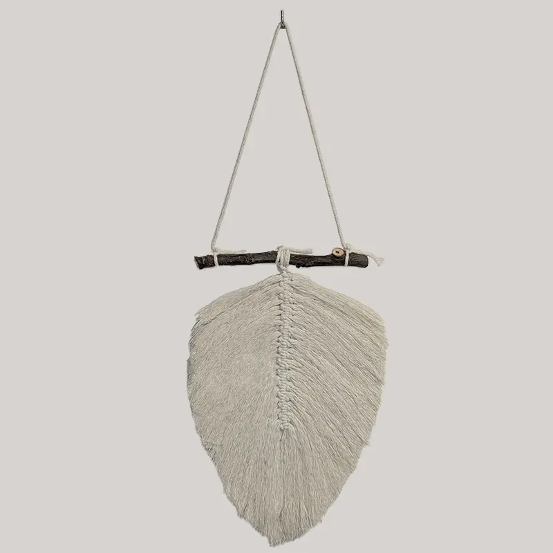 Pluma colgante de macramé unicolor.